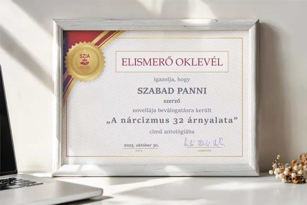 Az elmúlt héten különösen örömteli hírt kaptam: két novellámat is beválogatták a SZIA Tehetség Alapítvány pályázatának nyertes alkotásai közé. A művek a A nárcizmus 32 árnyalata című antológiában jelennek meg, amelynek megjelenése várhatóan február végére tehető. Az írás régóta fontos